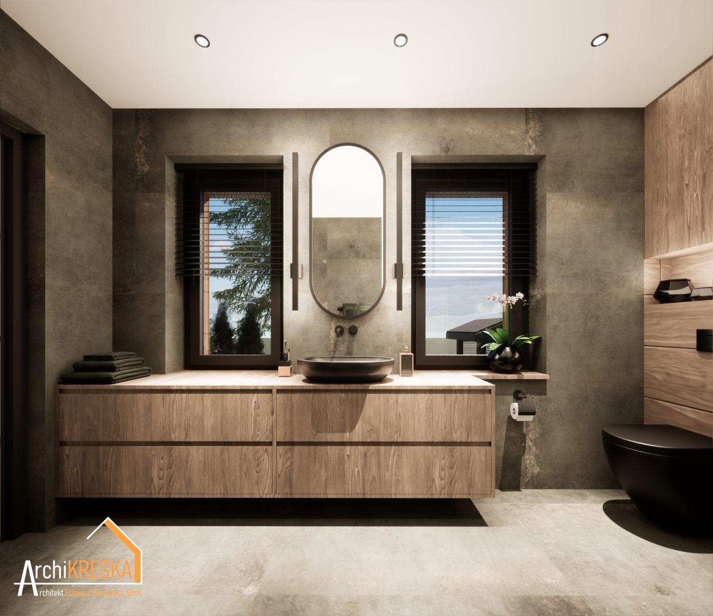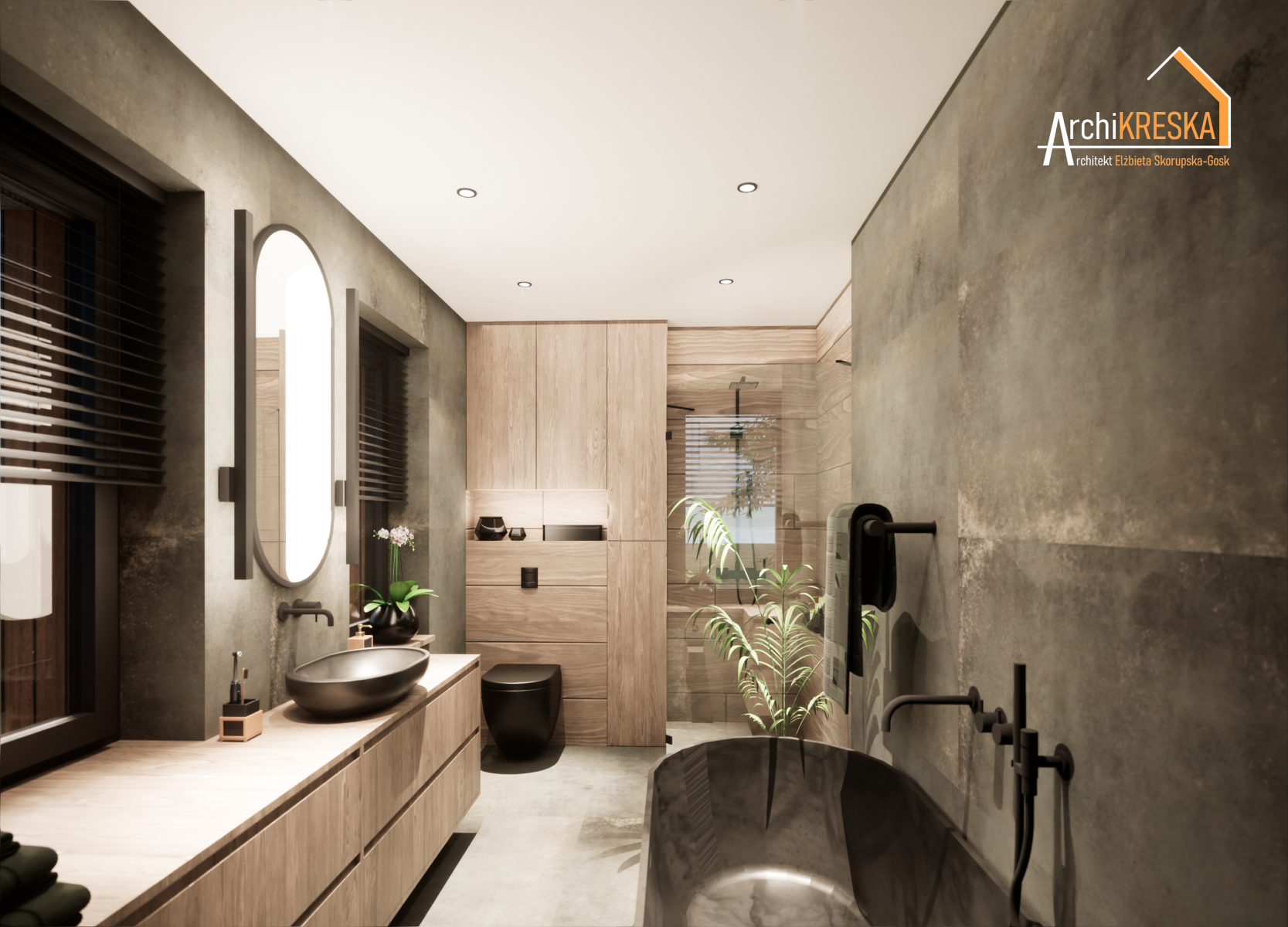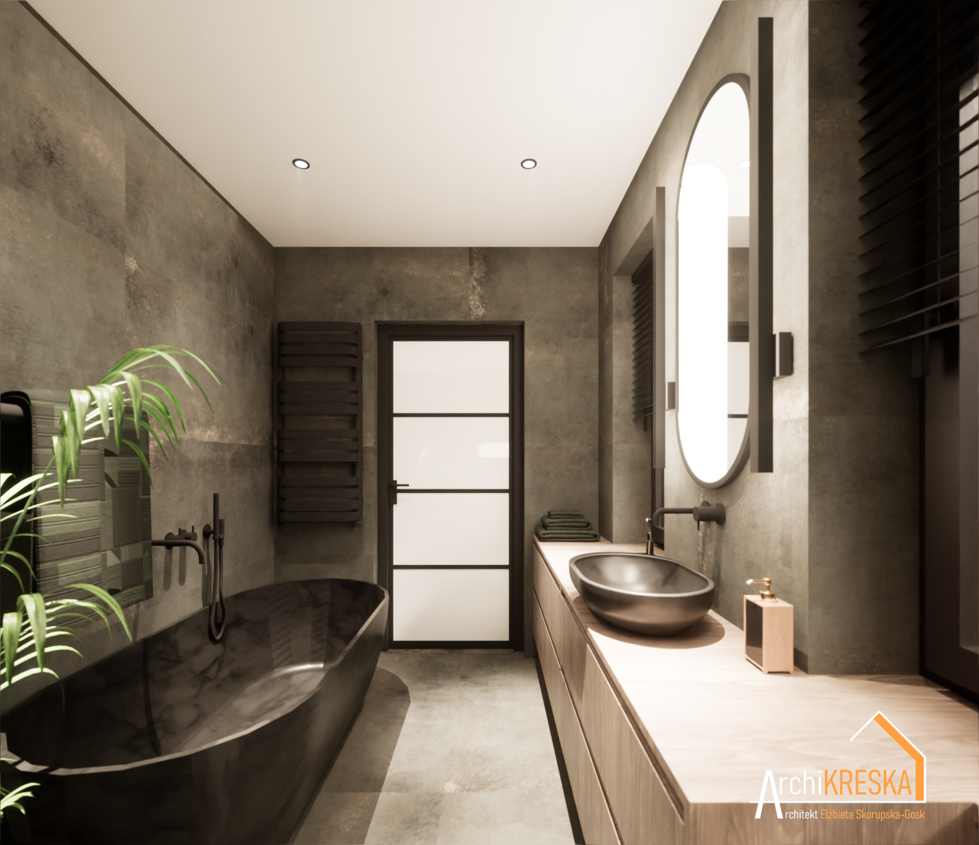 Projekt aranżacji łazienki o powierzchni ok. 8m2.