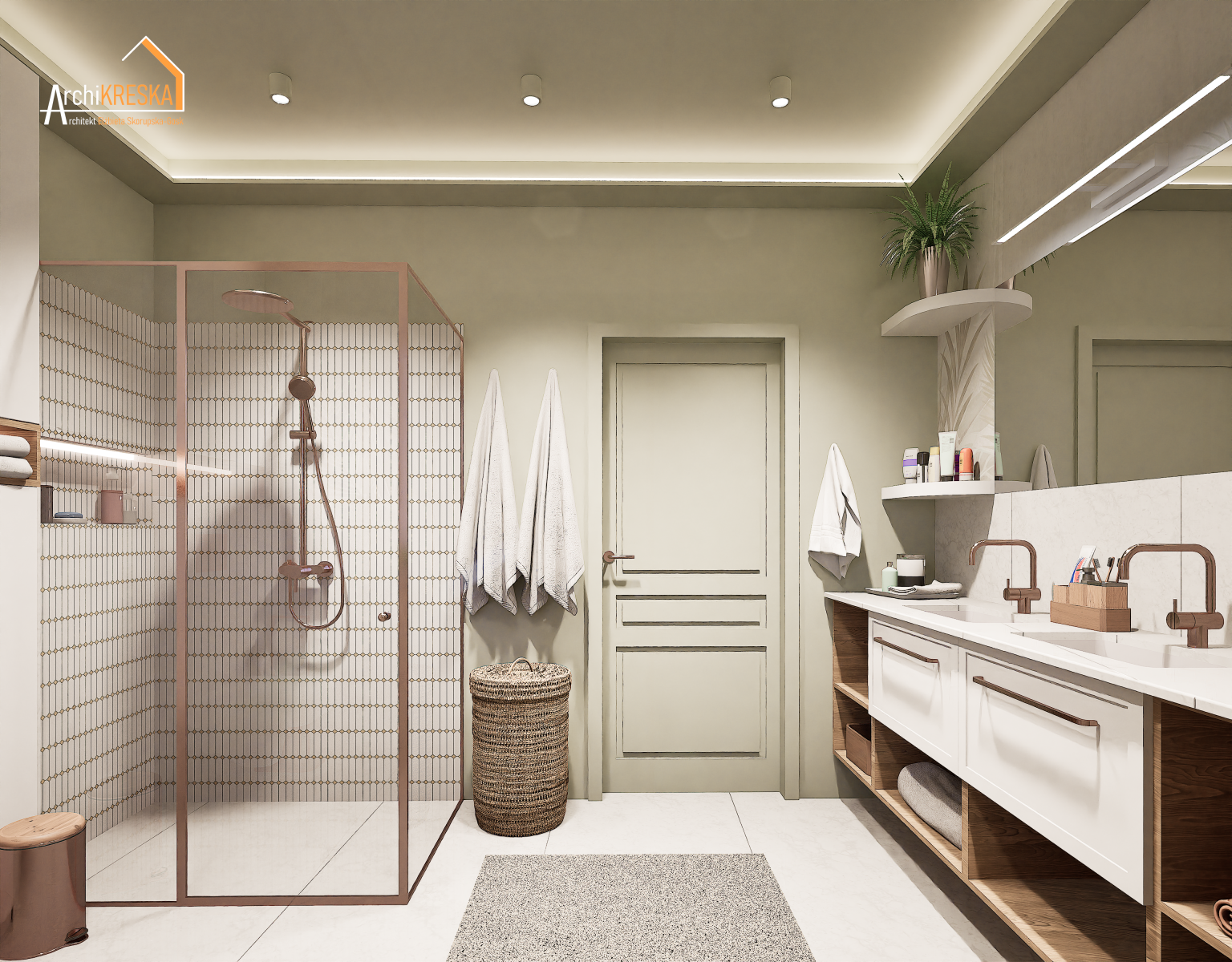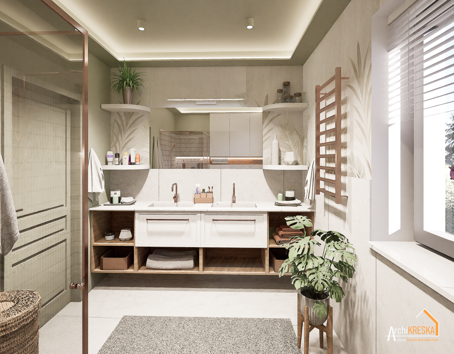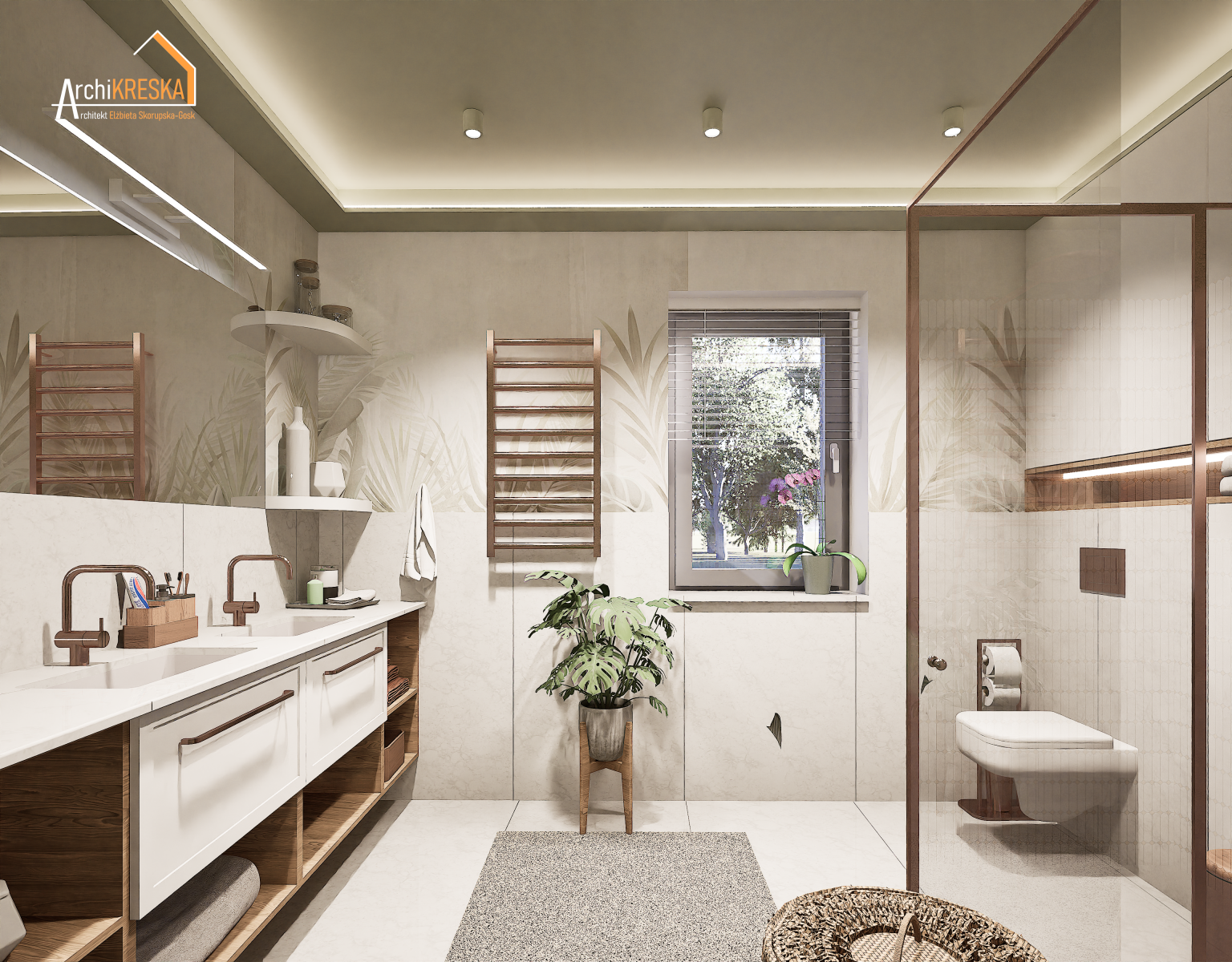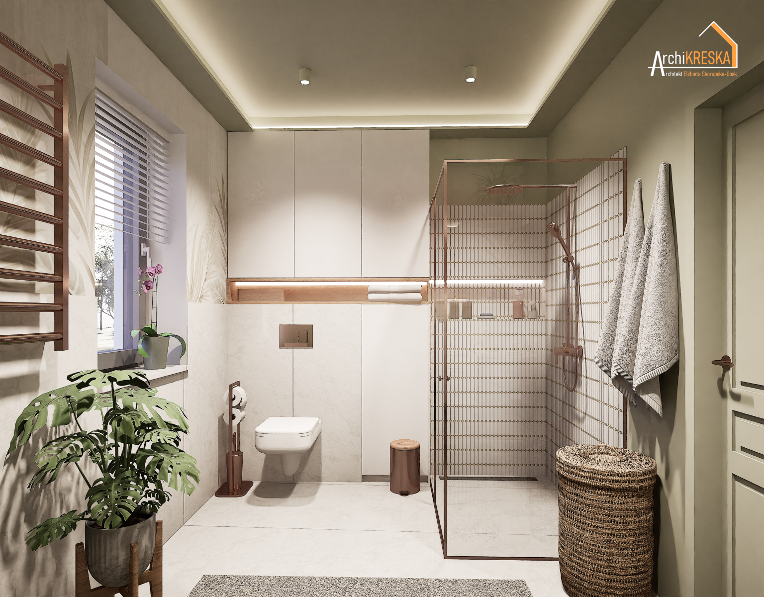 Projekt aranżacji łazienki o powierzchni ok. 8m2.