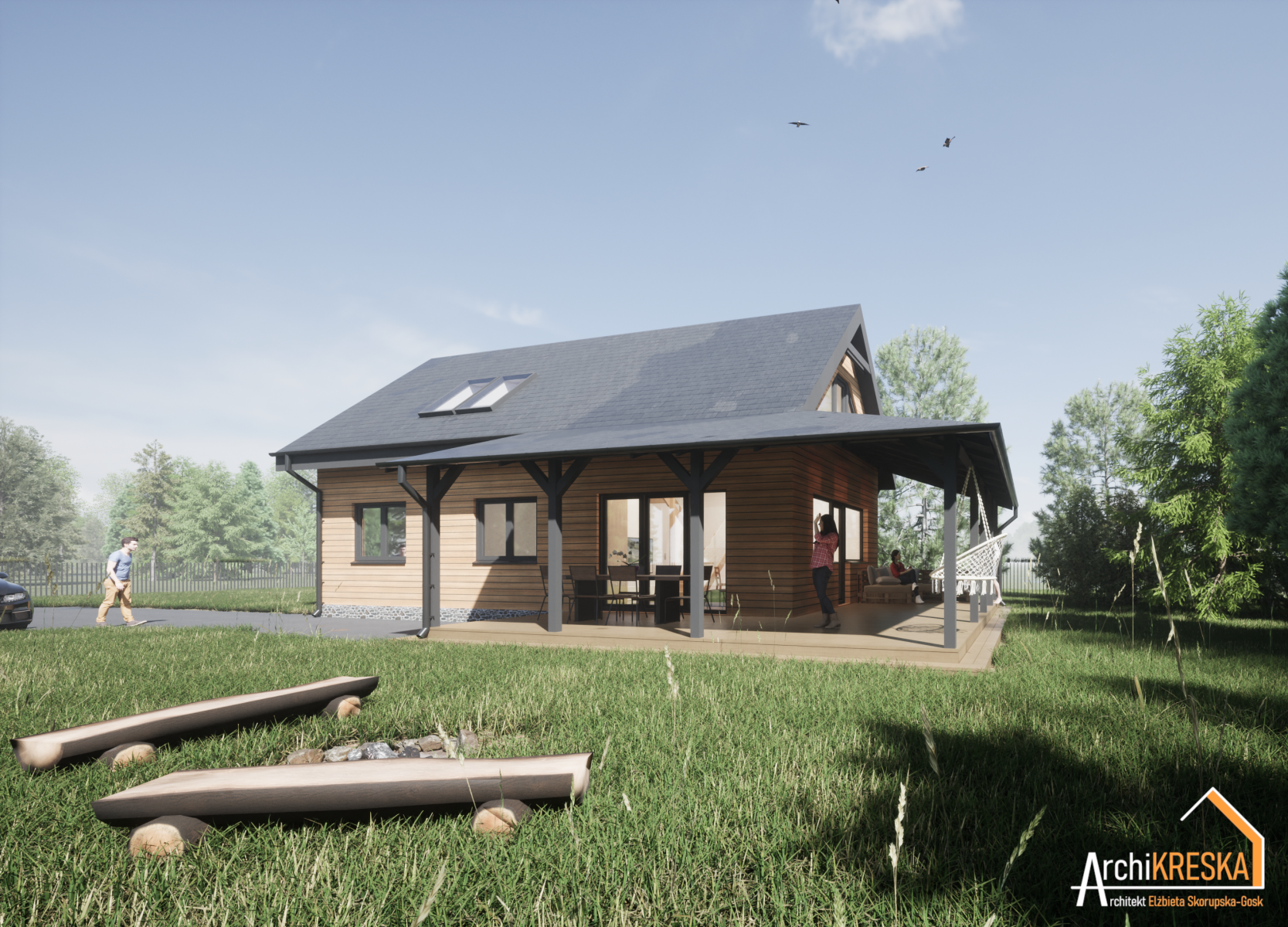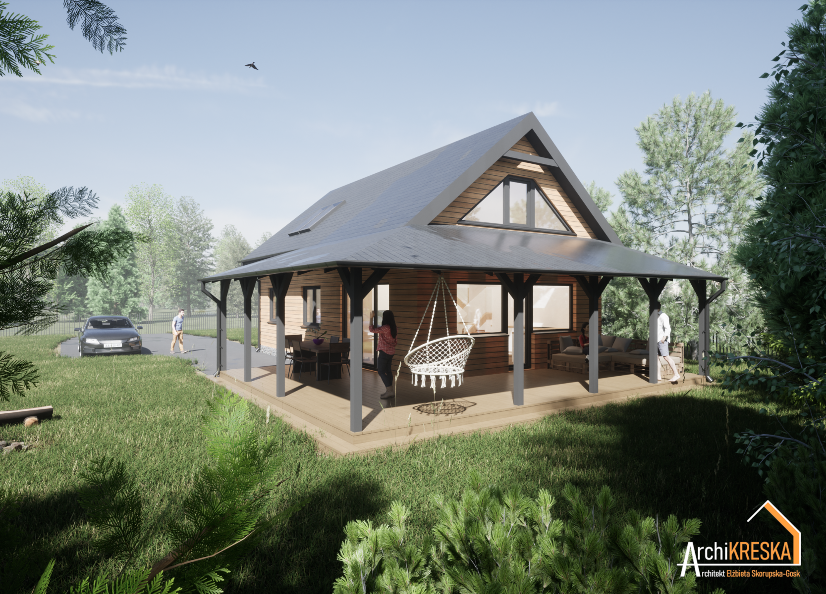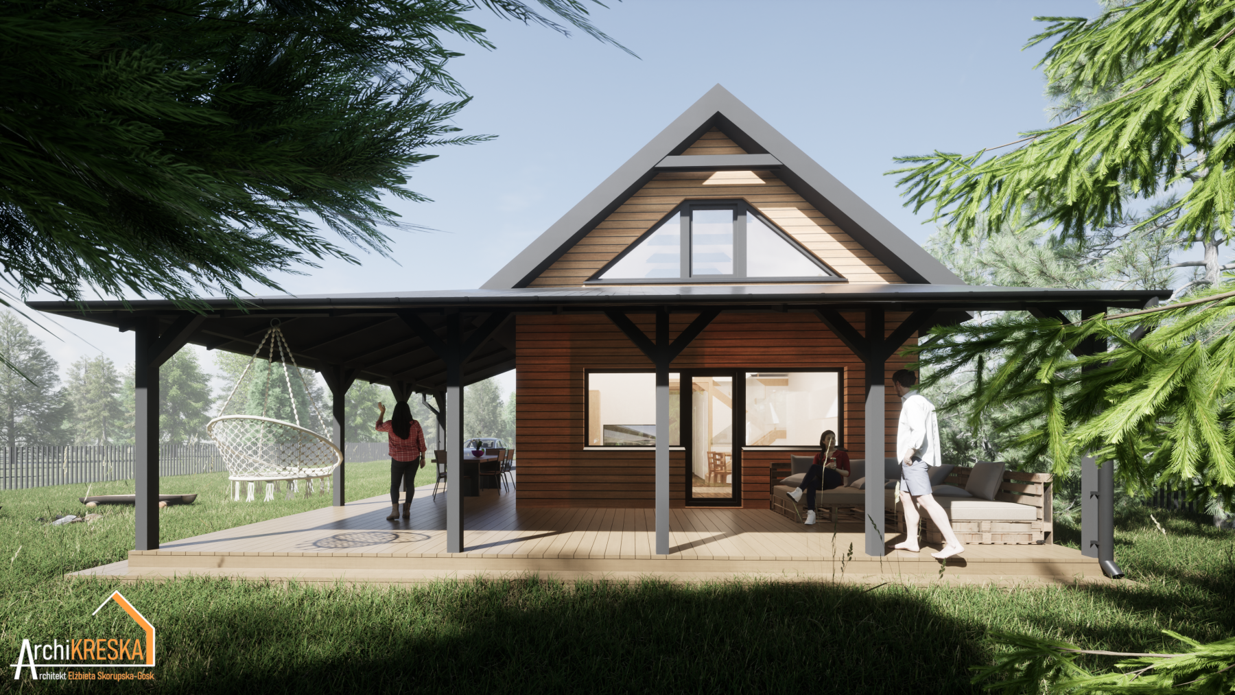 Budynek rekreacji indywidualnej w konstrukcji drewnianej, szkieletowej – projekt na zgłoszenie. Parter z antresolą